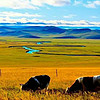 行:呼伦贝尔大草原宛如一幅巨大的画卷,无边无际,处处都是蓝天白云。一路边玩边行,成群的牛羊映入你的眼帘,蓝天、白云、绿草地、金黄的油菜花尽收眼底