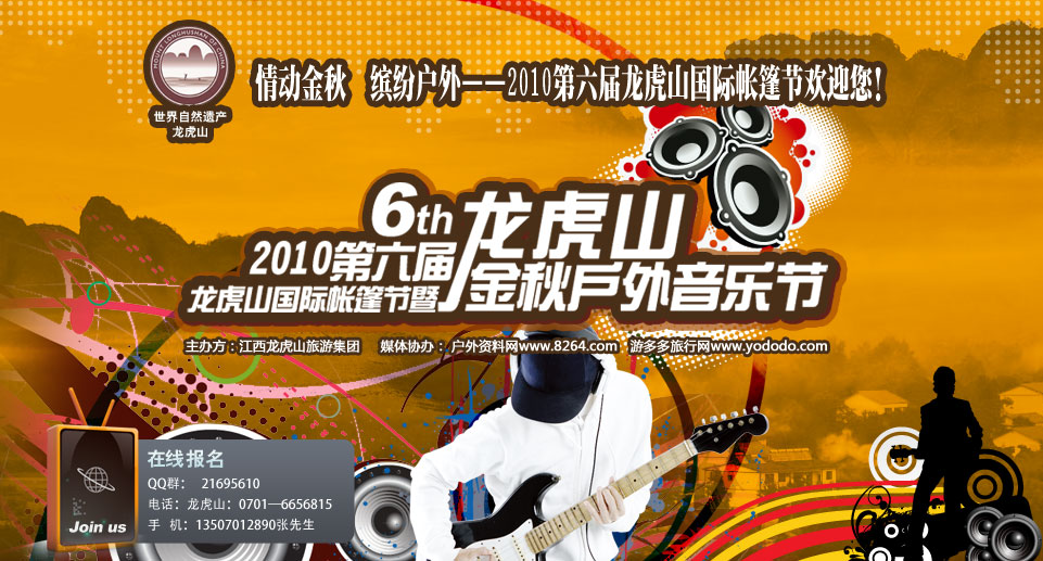 2010年的金秋之季,让我们再聚首,天下驴友,大家一起背上行囊、暂时抛却烦心的俗事凡尘,相聚龙虎山!在这个丰收的季节里,一起收获幸福,拾取快乐,伴着歌声与欢笑,共度一个激情难忘的户外盛典……
