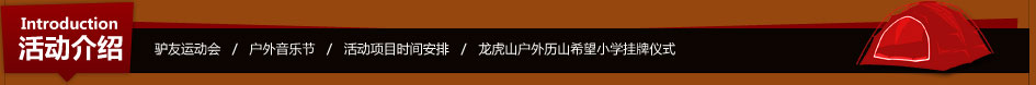 二、主要活动项目为您制造双重惊喜,为您倾力打造“驴友运动会、激情四溢户外音乐节”两大版块及中国首个户外希望小学挂牌仪式。