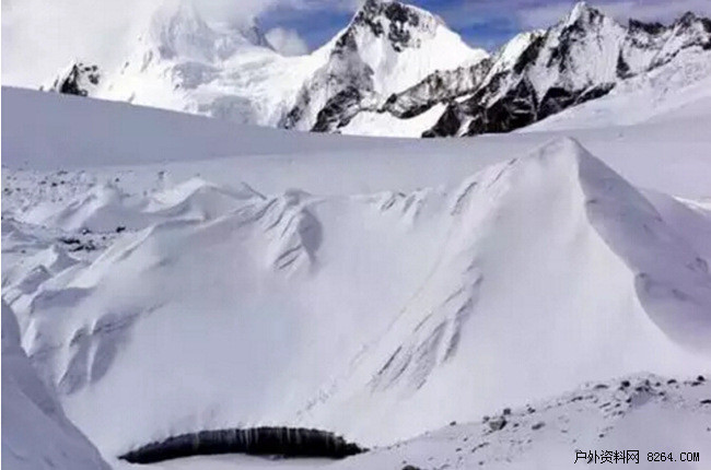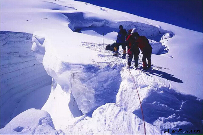 特别注意一些容易形成冰裂缝的地方,例如冰川转弯处与坡度升高的地方。