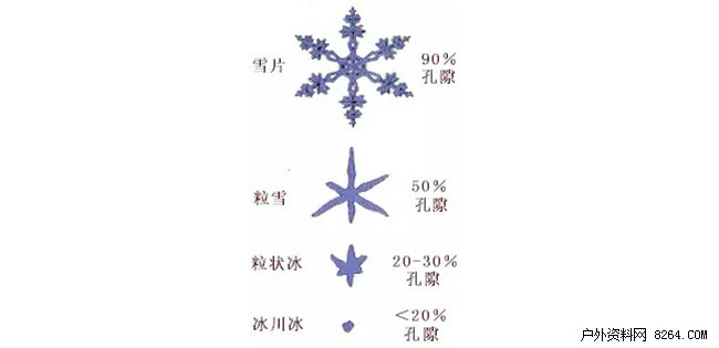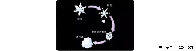 在陈年雪里,雪结晶已经变成了冰粒。现在,冰粒要通过陈年雪变成冰川冰。当冰粒之间的空气缝隙被封死,雪块因此变得密实时,陈年雪便成为冰川冰。