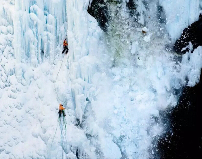 当悬空的冰川、冰瀑以及冰川上任何被冰塔覆盖住的部分倾泻而下时,崩落的冰块可能从陡峭、混杂的冰瀑崩落,这就是冰崩。它是由冰川流动、温度以及冰塔形成的因素共同造成的,冰崩随时可能发生,与季节、温度或降雪量没有绝对关系。不过冰崩大多发生在温度上升到冰点之上或下降到冰点之下的夜晚。如果一定要经过这些区域,应该避开这段时间或小心翼翼快速通过。
