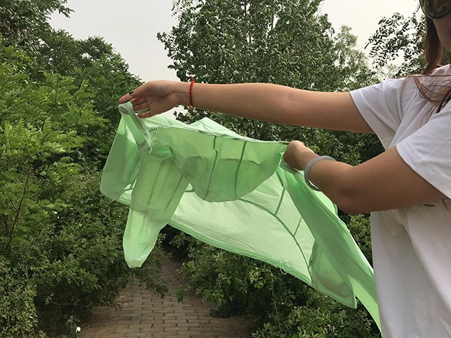 这件皮肤衣可以用薄如蝉翼来形容,如下图,衣服在室外可以随着风律动,轻舞飞扬。这里其实真的要赞一下NORTHLAND这个品牌,是首家推出皮肤衣薄如蝉翼这个概念。