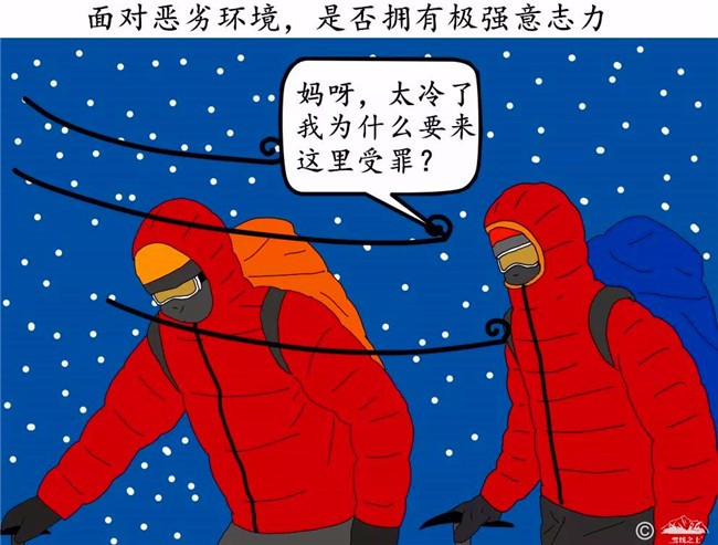 极强的意志力——在常年的攀登历程中,登山者会遭遇恶劣环境、经历失败,甚至经历队友的伤亡,他们需要极强的意志力来面对下一次攀登。