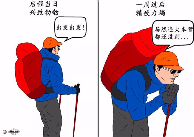 万一失败,择年再战——经过长时间艰苦的攀登,万一因为天气突变、身体受伤等原因登顶失败,登山者就得择年再战。
