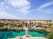 上文讲到了马耳他的首都瓦莱塔,和它超级U型拍摄必出大片的宝地。其实来马耳他的人,大多是冲着这里是三蓝——蓝洞、蓝窗、蓝湖。融入绿色蓝,融入蓝色的绿,蓝绿的交织,蓝绿的浸染。人们心中最美好的海的颜色在这里完成组合,加上《权力游戏》取景地的加持,让三蓝格外出名。不过,我更多感受到的是平静的海水,温暖的体感温度,稀少的人群,没有太多商业化的旅游氛围,作为游客这种“舒服”才是最佳。