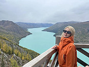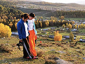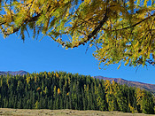 离开禾木我们去喀纳斯,那个北疆旅游必去的地方。喀纳斯是蒙古语,意为美丽富饶、神秘莫测之地,位于阿勒泰布尔津县,北接哈萨克斯坦和俄罗斯,东邻蒙古。喀纳斯湖是中国最深的冰碛堰塞湖,属北冰洋水系,是中国唯一西伯利亚系动植物分布区, 具有欧洲生态体系,这也是喀纳斯吸引游人的重要因素。贾登峪转乘景区车到观鱼台,公路沿喀纳斯河蜿蜒曲折地在山谷中盘旋,才过两天感觉路两侧山坡上金黄色的西伯利亚落叶松、白桦林和火红