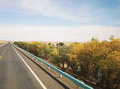 孟克特徒步结束后,本来约了一个自驾和徒步相结合的活动。我在 奎屯 修整一天,于9月23号回到 乌鲁木齐 与另外三个队友汇合,可是就在当天晚上她们突然改变了行程,这让我不能接受,所以退出了活动。24号当天我看了一下天气预报,又咨询了一下当地旅游团,果断报名了一个四日汽车 喀纳斯 游。之后的行程印证了我的决定是非常正确的。25号一早如约来到集合点,上车出发。第一站魔鬼城。路边的胡杨林已经渐渐变成金黄色