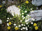 一直盛传喀纳斯湖里有水怪,每年都有几个游人拍到,巨大的体型在水下披荆斩棘的游过,气势宏然。前几日还又冒头了一次,直接上了CCTV新闻。官方的解释是,水下可能有一头史前巨型哲罗鲑,姑且信之。这趟不知道有没有缘分见到水怪,但喀纳斯的美景确实是滋养灵物的好地方。 那仁草原来喀纳斯这么多次,第一次看到她的夏季限定景色。黄色的顶冰花是喀纳斯那仁草原上的报春使者,它们的嫩叶还在冰雪中时就蓄势顶着冰雪而出,因此