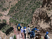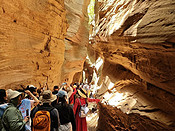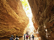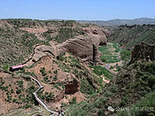 早上7点发车,大巴4小时200多公里的路程,11 点到达雨岔大峡谷。延安雨岔大峡谷(又称甘泉雨岔大峡谷)位于陕西省延安市甘泉县下寺湾镇雨岔村,是一处由红砂岩地质构成的丹霞地貌奇观。好像上苍在这里开了一个玩笑,在此处裂开了几条地缝,让人们去探索丹霞地貌的密码。