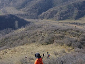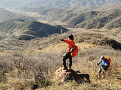 原创:陕西韩城驴友~明 抖音里无意中推荐了“崤函新风”的“趣玩”帖子,报名很方便,于是有幸参与了来三门峡的第一次驴行。陇海铁路桥下集合,首先给领队“秋风队长”报到,领队很随和,人也特别好,视频照片拍摄的也好。集合后一行18人4台车出发,车行40分钟左右到达目的地——“权家沟”村。 抬头望望,山都不是很高,不同于韩城经常去的黄龙山脉,这里都是连片的小丘壑状态的小山,一眼望去,连绵不断的山