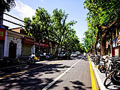 七十年代末到八十年代初,去过数次咸阳。半年前看车友刘师傅发在网上,骑行咸阳老街的照片,我很吃惊,老城区的中山街,把四十多年前的老街道,接近原样保存了下来。带着怀旧的心态,我们八位车友骑行了咸阳老街。 我们在老街东头清渭楼广场集中。 中山街路口往深处看,这里的街景和四十年前几乎一样,不过从前是沥青路,现在路面铺设的是石板。