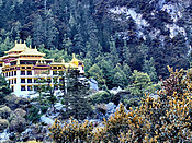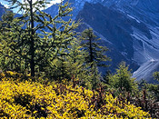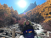稻城亚丁大转—顺山顺水、无风无雨、金色相伴、神山相随10月中旬没有约上轻装徒步亚丁大转的队伍,只能跟着网上约的重装队伍开始了稻城亚丁大转。10月14日重装亚丁大转终于成行,七名队员,我年龄最大,队员一早在成都新南门客运汽车站汇合,开始亚丁大转的第一天。大巴一路颠簸晚上到达香格里拉镇,入住酒店后大家约定第二天上午进景区逛逛,最后决定是入住亚丁村。亚丁村民宿老板早早到酒店把大家的行李带进景区,我们轻装