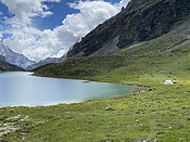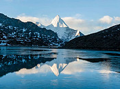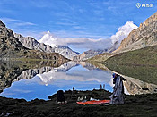 (央迈勇神山)徒步亚丁大转山的第四天下午,我走到央迈勇神山脚下的蛇湖边,遇见了在此扎营的东北小伙富贵,聊起第二天的行程。富贵说:天气开始变糟,眼看就要下雪了,他和队友决定明早从牛奶海方向下撤出山。我脱口而出:就是下刀子,我也要从卡斯牛棚方向走,完成亚丁大转山。话一出口,我就后悔了——这话放在心里是决心,说出来便是夸海口。果然,啪啪打脸来得快,三个小时后就开始了。而第二天的打脸,更是花样翻新、层出不