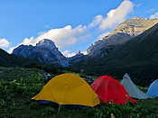 6天5晚走完亚丁大转山,经历了一场身体的磨难和灵魂的洗涤,完完全全认识到这条全国top线路的地位和魅力 D1 康古村—-抵旦牧场 行程16km 爬升约1700 凌晨4点康古村出发(以防被抓,悄悄的进山,打枪的不要),需要过6次有桥的河,全程几乎一直在爬升,一整天都在原始森林里穿梭。这是亚丁给每位转山旅人的一个下马威,如若接受不了这样的强度,强烈建议放弃。在牧民房旁扎营,收费每个帐篷20元。 D2