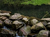 雪花潭 一处被隐藏的山水宝地! 茂林修竹、秀峰奇岩、飞瀑流泉 原本应该盛夏期间去玩水的路线,但到时候再去估计是人挤人下饺子,带狗则更是不方便,于是提前开冲 导航 雪花潭景区 免费停车,有厕所,有小摊补给 无门票 宠物友好 徒步路线 往返路线,全程约3km,溯溪+徒步耗时3h 考虑到刀枪岩环线在这个炎热的天气下有难度,所以这次走的景区