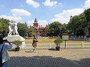 旅游,图的是心情,家人同游,心情最愉悦。10月3日,我们一家三人到上海影视乐园一游。上海影视乐园位于松江区车墩镇,离市区较远,我们先乘地铁后坐公交,来到车墩镇时,已近中午。午饭后,我们走进影视乐园。正逢长假,游人很多。 上海影视乐园是由上海影视(集团)公司通过市中心土地置换筹资建造,首期工程于1998年10月竣工。上海影视乐园有旧上海的市井风情,有欧式的标准庭院,有拍电影的幕后秘密。