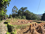晨,饔后出机车,跨涪江而东南。约四十里,折入乡道,起伏而前。入清溪村,寻得“毛主席著作陈列室”,省保,为上世纪一农舍,标语仍在,却有斜木支墙,危矣。无人有锁而不得入。舍外柚果低垂,大如盆。