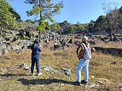梅子坪古道是2024年年末才开始火爆起来的,而我也是去年11月才听说这条徒步路线。 那么,这条路线是否值得去呢? 值得。 因为这条路线的风景不单单在广东省罕见,即便是整个中国也是独特的。为了吸引顾客,如今广东省的旅游公司都用“广东版的墨石公园”作为梅子坪古道的噱头。然而,川西的墨石公园与英德市的梅子坪的景色只能说有小部分相似,石块的形状却不同,整体而言是各有特色。 队友阿娟