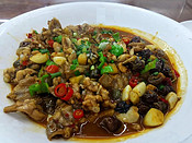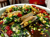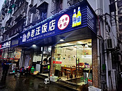 衢州是一座比丽水还要古老的城市,东汉建县,1800年历史,位于浙西,与安徽、江西、福建交界,四省通衢,制闽越之咽喉,后成为淅西重镇,其风俗与江西很接近。我下火车的时候大雨,从车站到酒店的公交车像是淹在水里一样,除了驾驶员正面一块扇形玻璃,根本看不见车外的市容市貌,其它的车窗被雨滴包围,闪着点点星空般的白光,只是觉得车站离城中心不远,估计这个城市也就不大。 找到酒店后开始找吃的,小可说她从来不