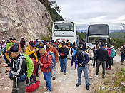 这是2025年的最后一次穿越。福州“结伴同行”户外的两辆大巴,停在了白鹤村外。此处海拔406米,距离村委会尚有约一公里多,是我们今日徒步的起点。另一支福州队伍已先我们抵达,五辆大巴,二百六十多位山友,让沉寂的白鹤古道骤然苏醒。村民惊讶地说,从未见过这样的热闹。上午9点22分到达徒步起点,海拔406米,距白鹤村委会尚有约一公里多。