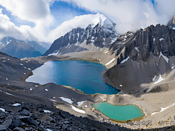 线路介绍 此线路在之前鲜有人知,属于横断山脉沙鲁里山系中段,由石头领衔《百日大横断》团队命名的格聂北线就是本条线的全程(本计划走全程但因天气与各因素走了半程),位置格聂雪山北部(巴塘境内)的相丘曲格至央莫龙一带的徒步区域。 而本条线的主要风景点为亚莫措根、央莫龙雪山与相丘切克雪山与各海子组成。 亚莫措根: 藏语意思为上面的大海子,位于四川甘孜藏族自治州巴塘县境内,在玛卡拉和
